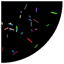 The below implementation is a much simpler one. One that does not use createPattern and thus is not processor or memory intensive. In this solution I have taken an animating canvas and rotate it 45 degrees each time. Here is what one slice looks like.