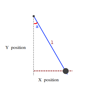 position of the bob. The image on the left shows how. We know two values. The angle (a) and the