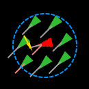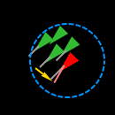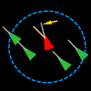 Alignment: When in range of other boids, the boid will try to align itself with the other boids. This is done by finding the average speed of the other boids and normalize these averages. |
