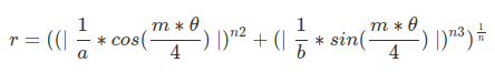 where the values a, b, m, n1, n2, and n3 are values that when changed generate different shapes.